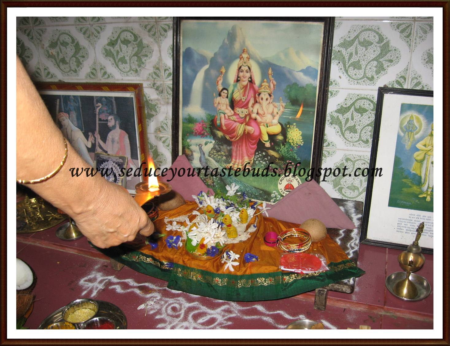 This year too mom invited me home to perform this pooja since this is done in the mother’s house by the daughter with the mother initiating the pooja.