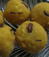 Vidhas remembers the time she spent in her Aunt’s place during college and helped with the sweets preparation during Diwali.When her aunt came to visit Vidhas,she prepared her fav Besan ladoo .Yumm….