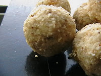 Poonam’s friend has come for a visit and her friend’s mom prepared these wonderful Rava ladoo’s for them..This one has a spice powder in it and am sure its as delicious as it looks…..