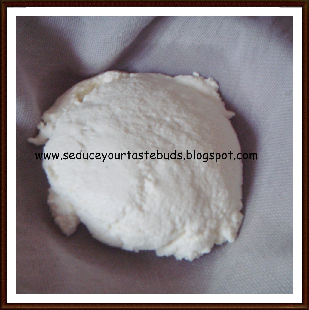 7.Squeeze out the water and hang the cloth till the whey completely drains out.[It took an hour!]