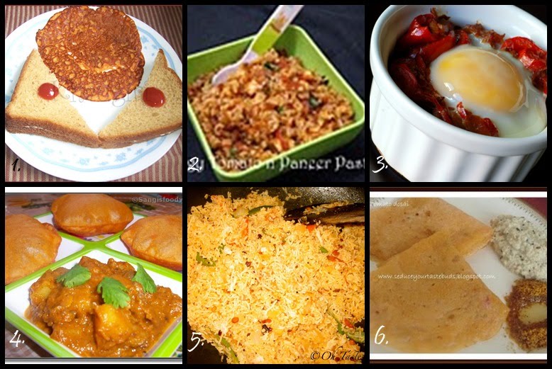4.Sangeetha of Sangi’s food world–Tomato poori with mushroom potato curry – A quick and easy combo for a breakfast or dinner when in mood for something tangy and spicy.