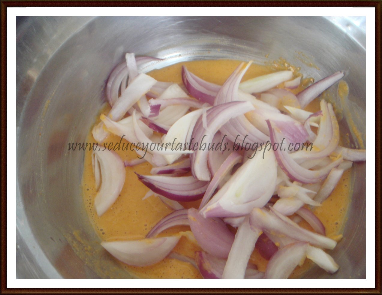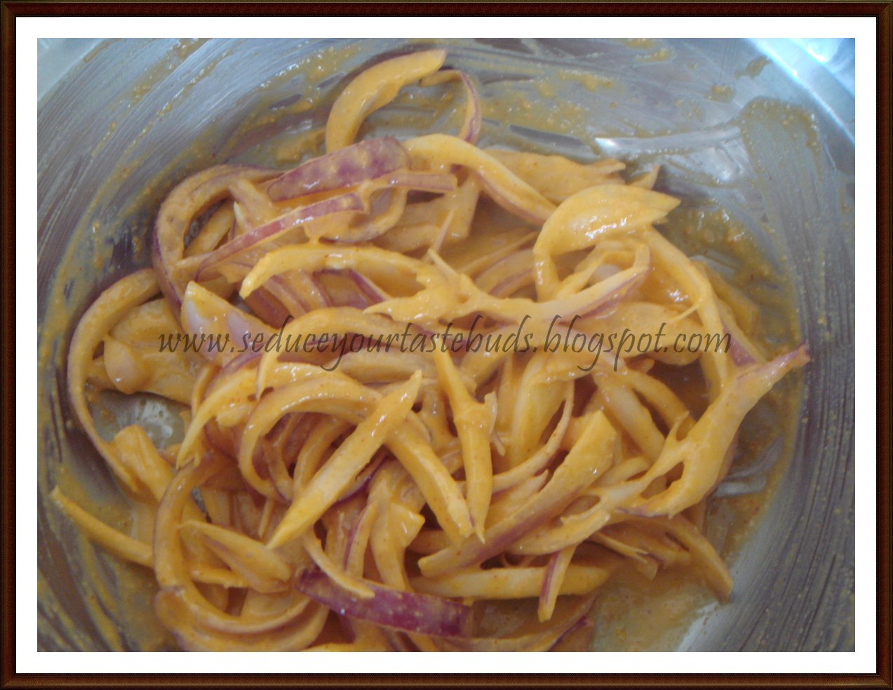 9.Mix well to coat the onion slices.