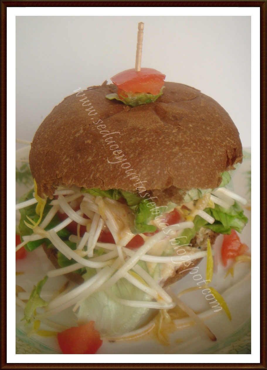 When I planned the recipe diary for week #1 , I made this. I was not in a mood to eat the regular lunch that I had cooked and this one seemed to be a better option.Earlier I had got some buns made of whole wheat flour and put together some veggies and viola! – a healthy lunch was ready.