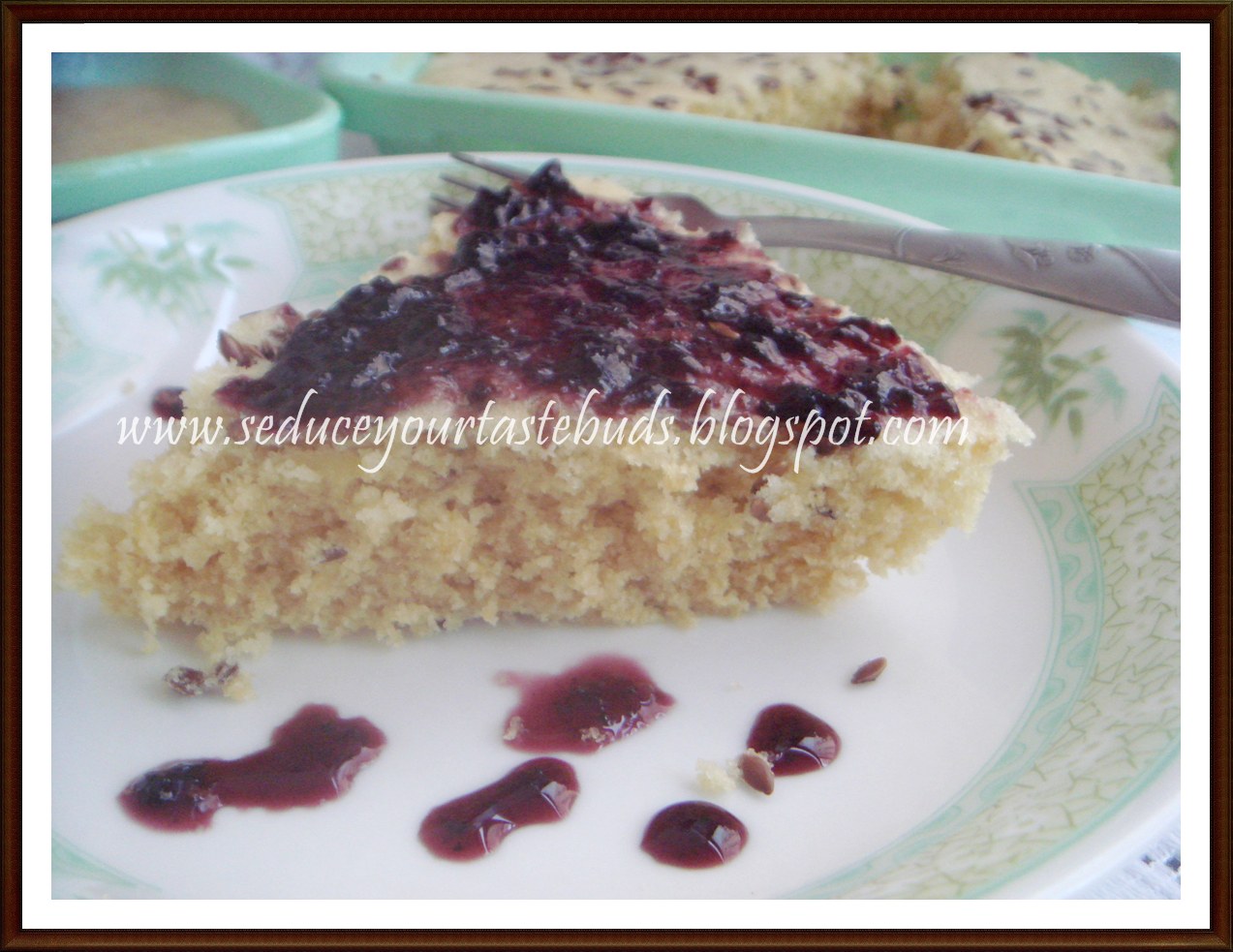 Here it is, the apple cake with blueberry jam for Lil angel…