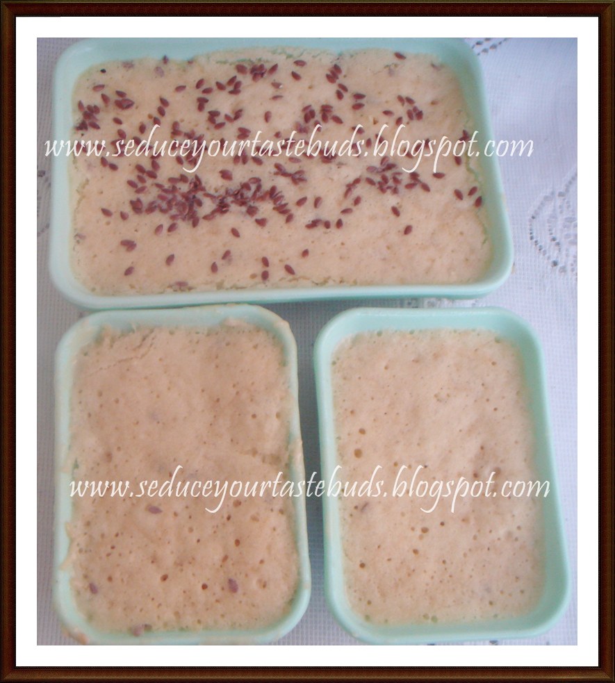 With a lone apple sitting in the fruit basket,it was the best way I could use it up.I added my favorite flax seeds which is actually not there in the original recipe.As usual I had one big and two small trays and the cakes vanished in no time!