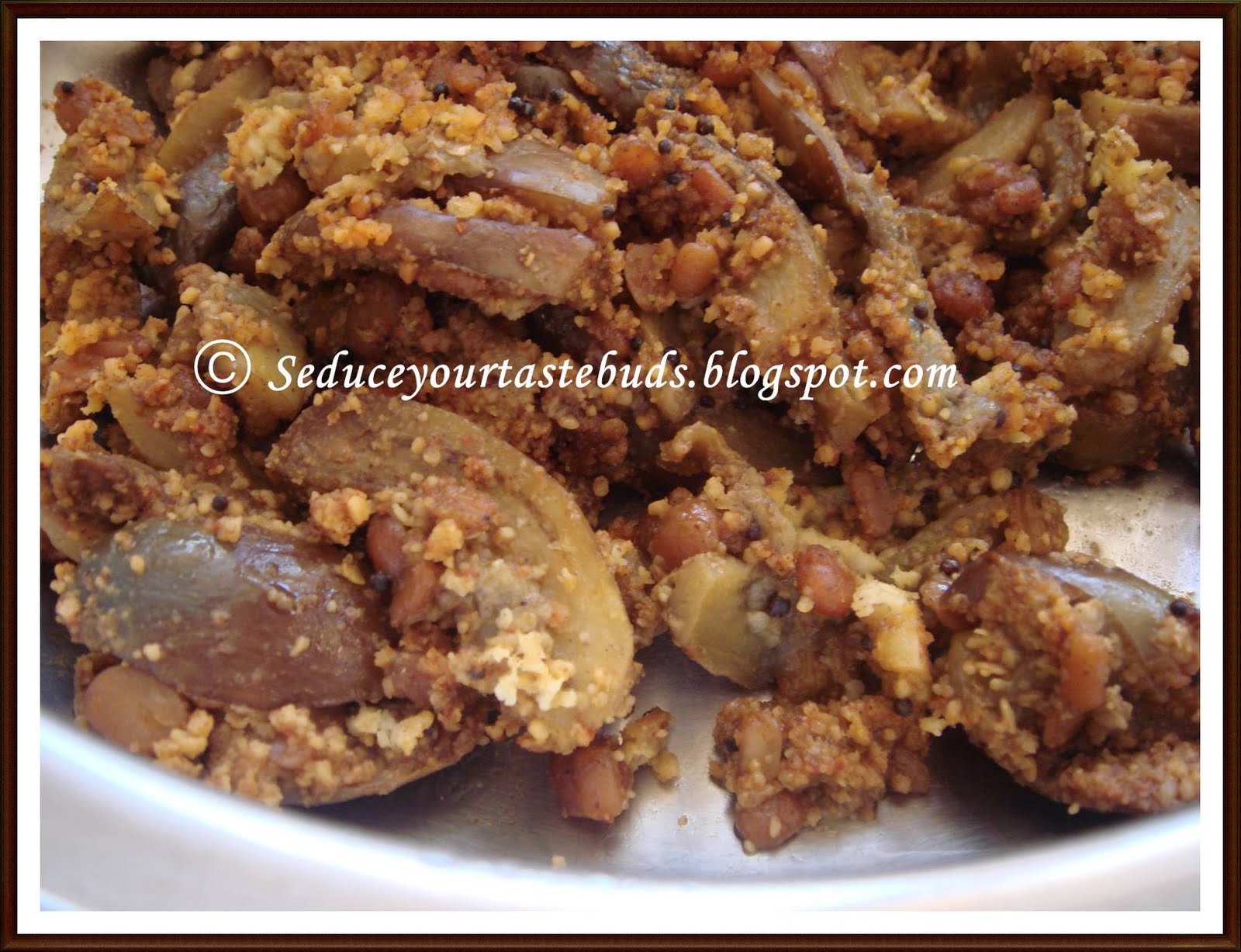 - Drain the brinjal and add to the pan as soon as the mustard splutters