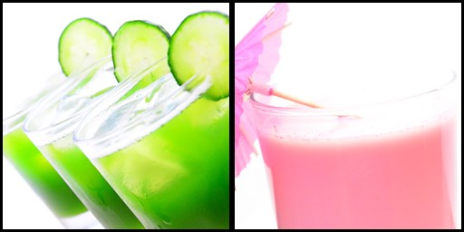 A colorful juice and milkshake from Denny of Oh Taste N See – Minty green cucumber juice and Rose Milk