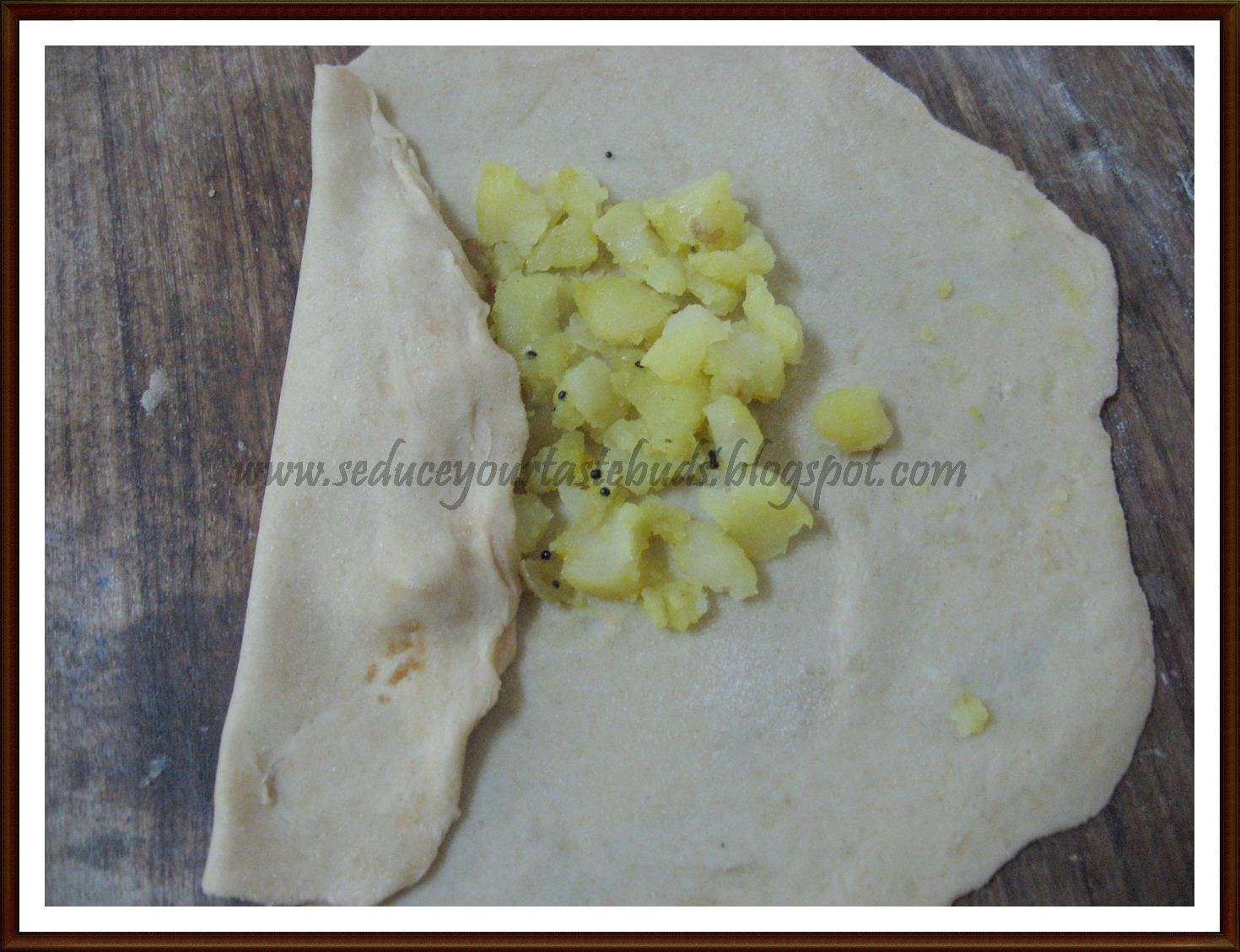 - Meanwhile heat oil in a pan and put in onion.When it turns translucent, add the other ingredients under ‘filling’ and mix well. Cook for 2 minutes and remove from heat.[By force of habit I added a little mustard seeds once the oil was hot!]