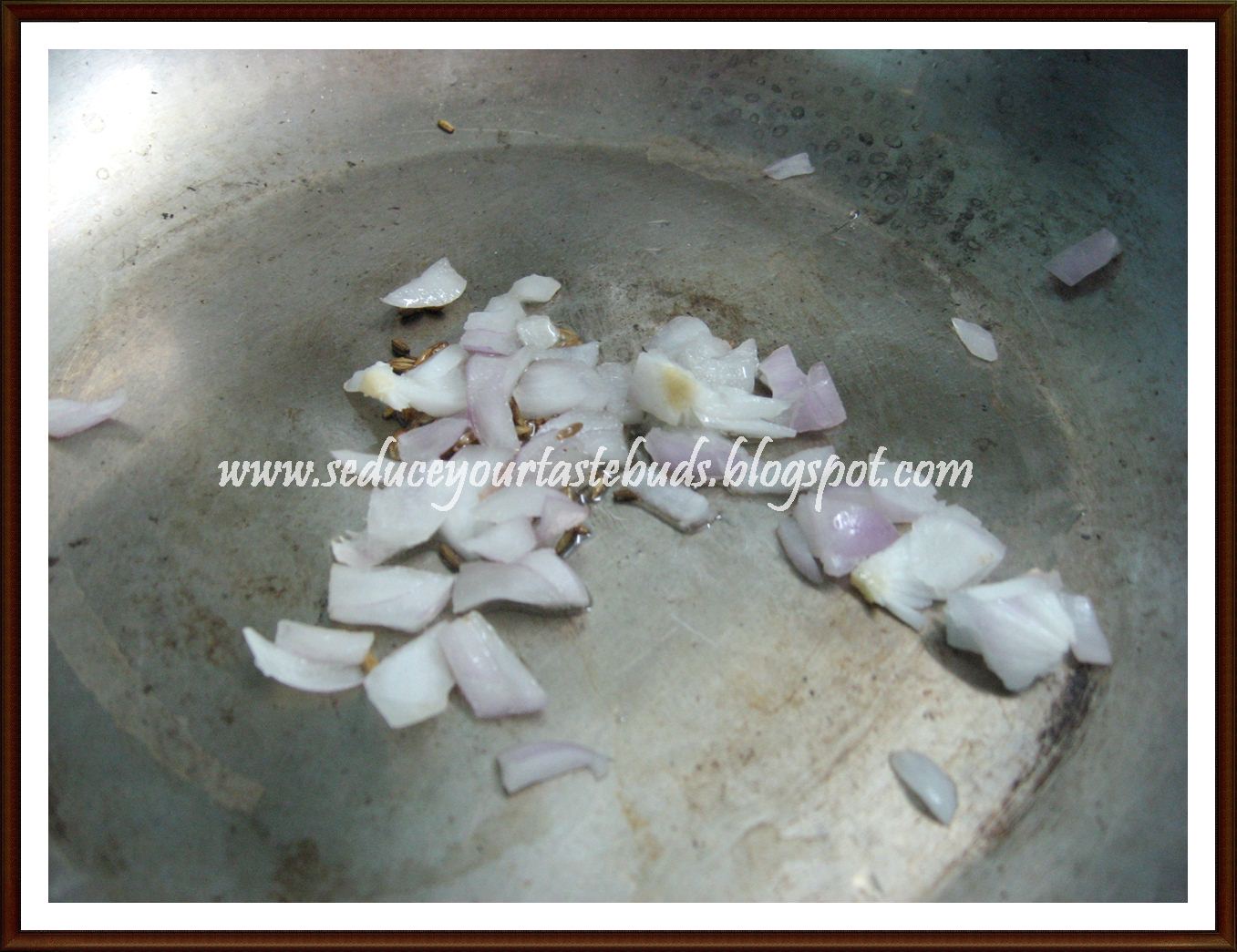 5.When the cumin sizzles, add the cook and cook till it is soft.