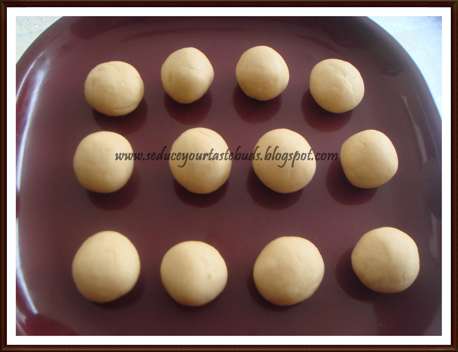 5.Bring the edges together and form balls.The surface of the rolled balls must be smooth without any cracks. Also take care not to roll them to a stiff/tight ball.