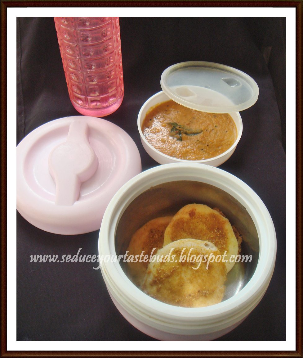 Rice dishes are the ones that Lil Angel loves to take to school.But some time when I am pressed for time [ read- Lil Dude awake all night and me sleepy eyed in the morning with almost nil energy …],I pack idli / dosa for her lunch box.