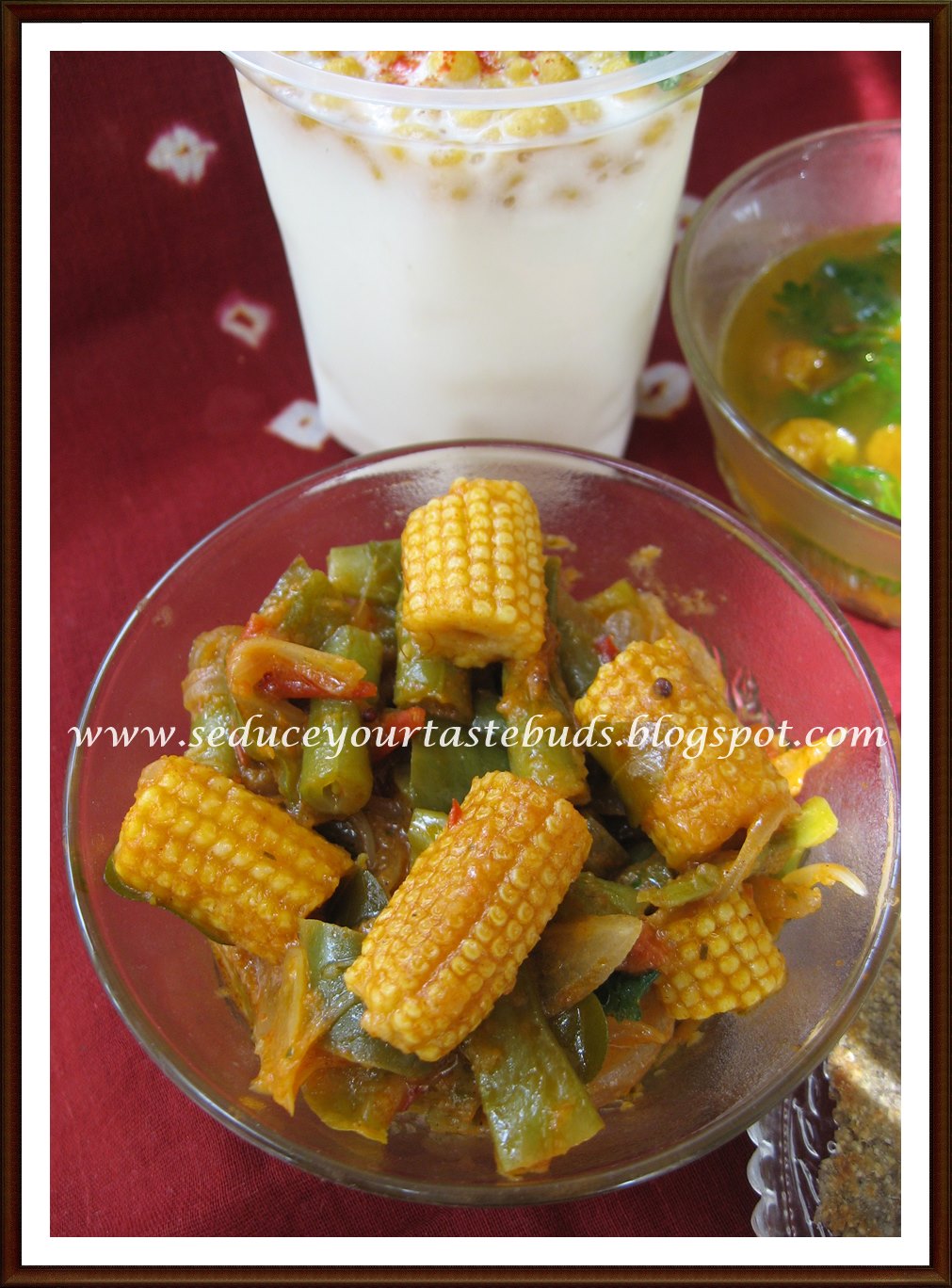 Yard long beans, Cluster beans,Baby corn, Capsicum,French beans – 5 cups, chopped into 1″ pieces
