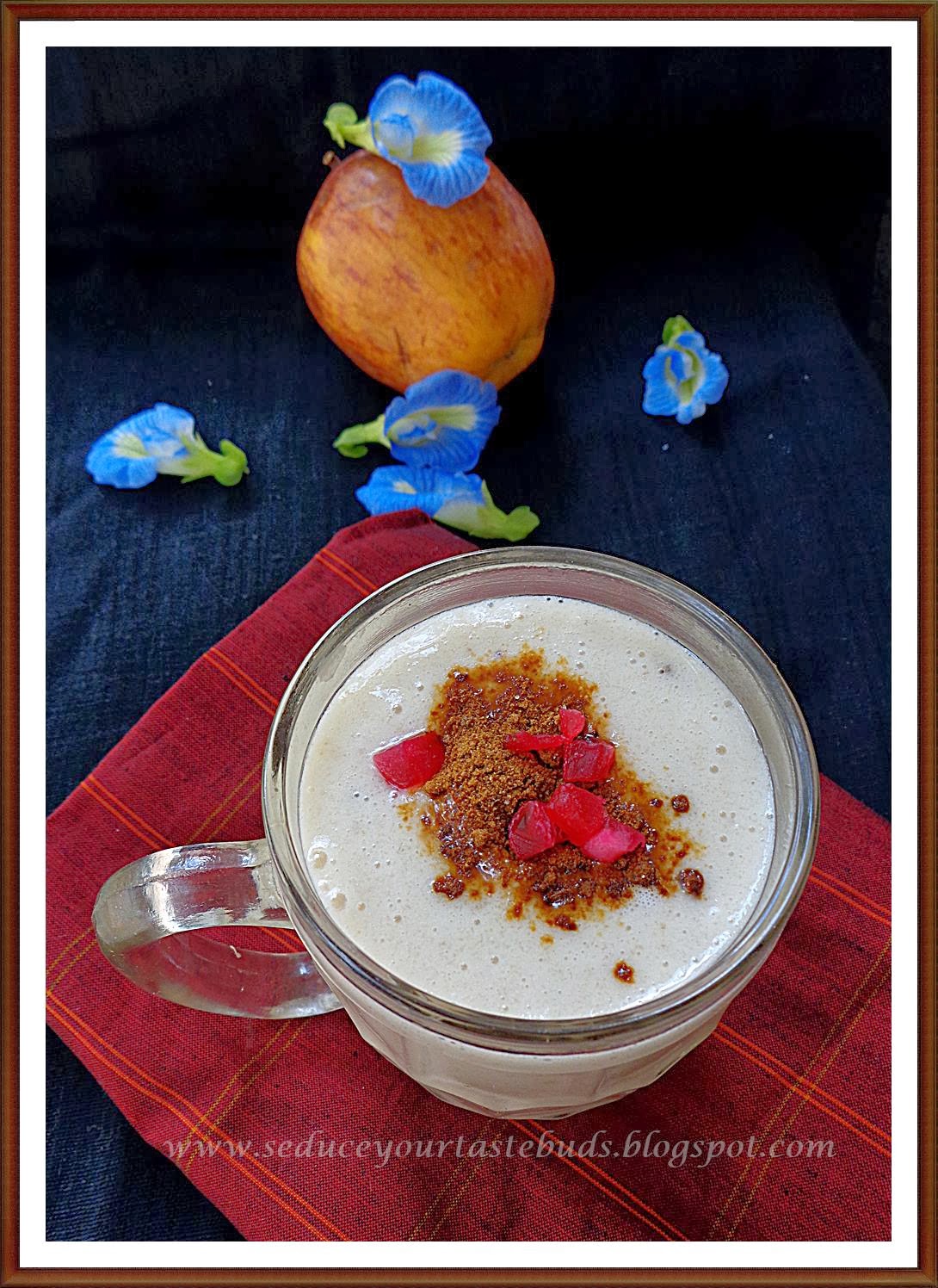 I had bookmarked several recipes from Sandhya’s blog. But somehow I was not able to make the elaborate ones and hence I settled on this smoothie!Out of the two apples that were in the fruit basket, I used one here and with all the add on’s this was a very flavorful smoothie.