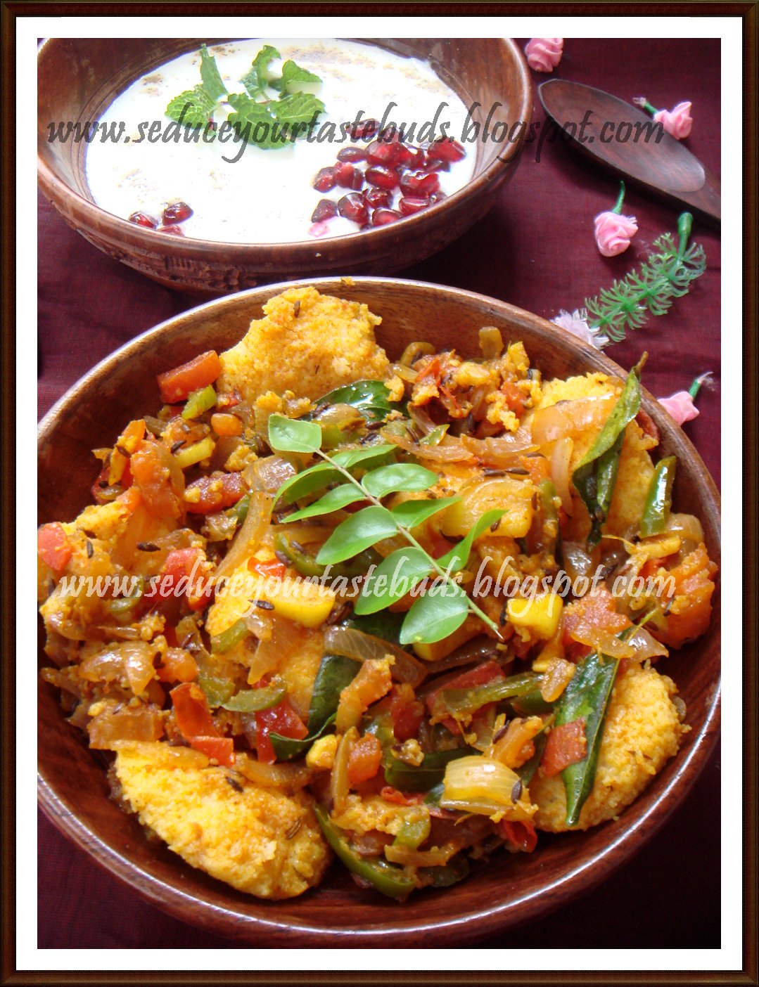 Leftover idli from the morning meal can be used. If using freshly steamed idli ,refrigerate it for an hour and then use.Freshly steamed idli turns mushy when added to the masala.