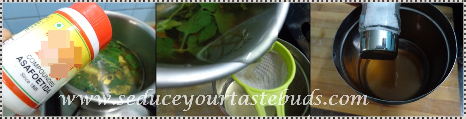 Add the asafoetida powder and remove from heat. Strain and add salt.