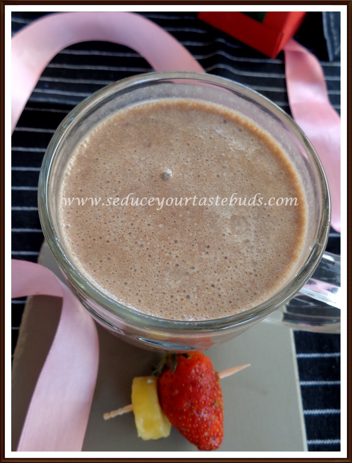 I made use of the last few strawberries of the season to make this filling drink. Kids love beverages with chocolate and when there is strawberry in it, then it makes the drink even more special.