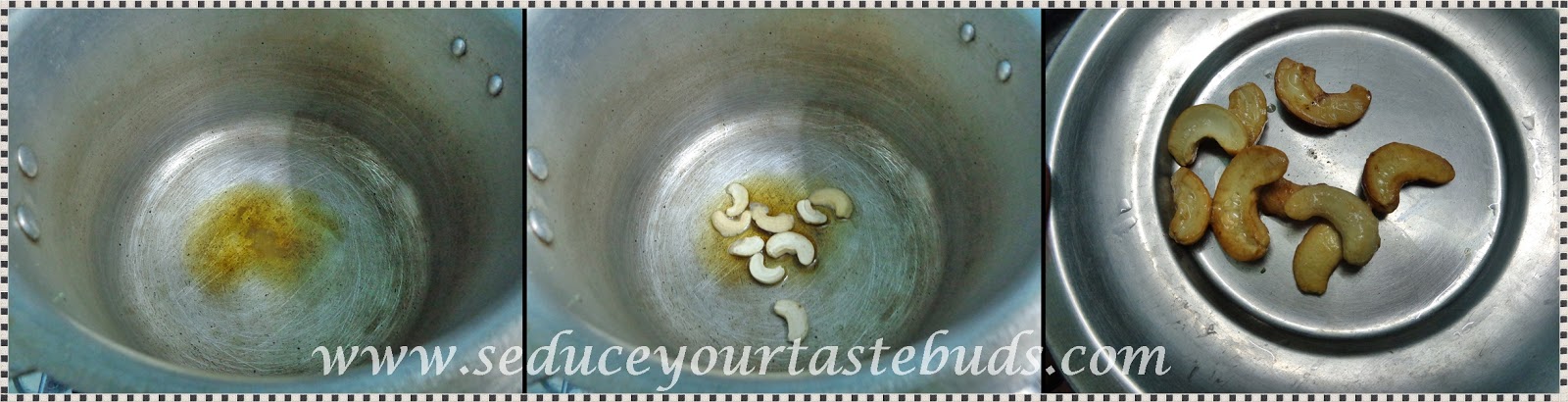 Heat ghee in a pressure cooker and add the cashews and fry till golden.Drain and keep aside.