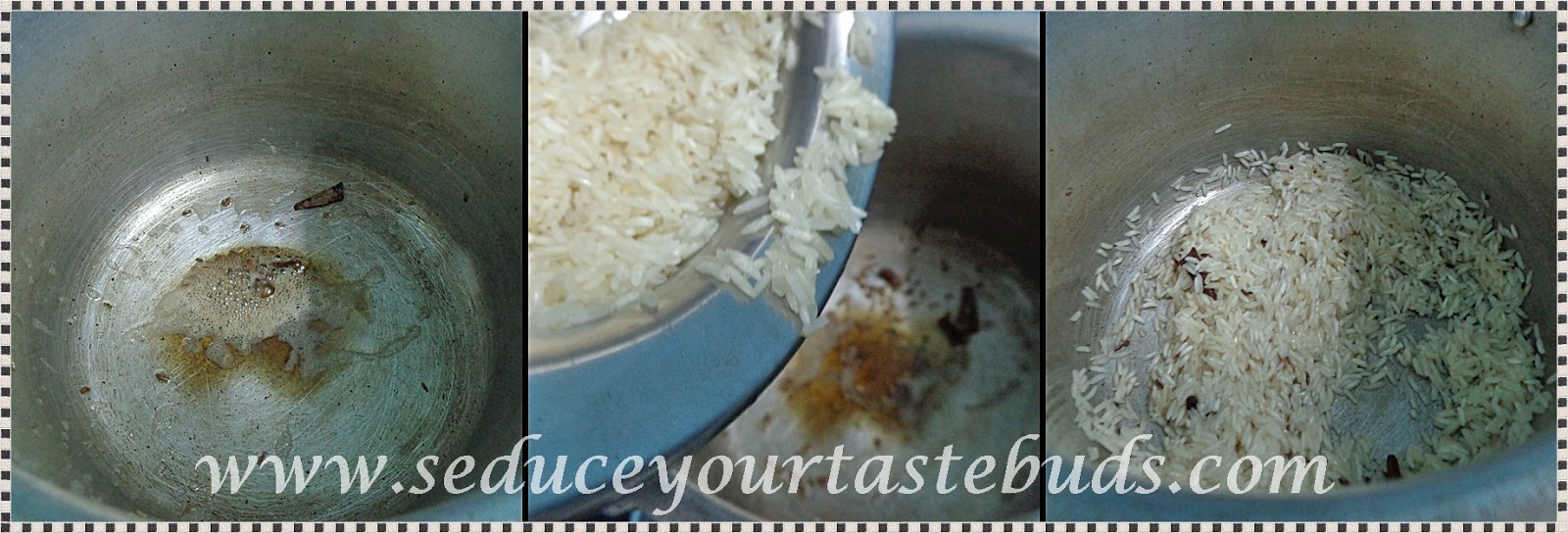 - Sometimes, I saute finely chopped onion and garlic in ghee before adding rice.