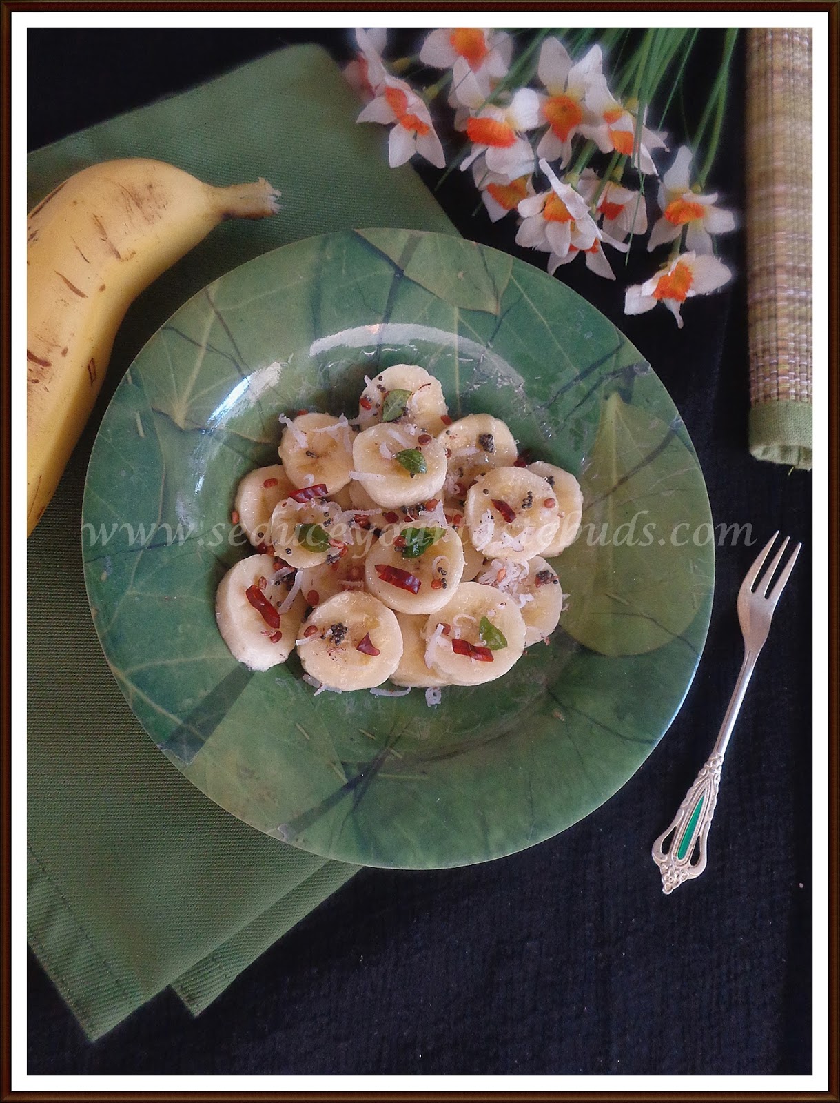 So here is the simple salad like dish that is usually served in our weddings and other traditional meals.The idea of bananas tasting sweet and spicy/savory with a