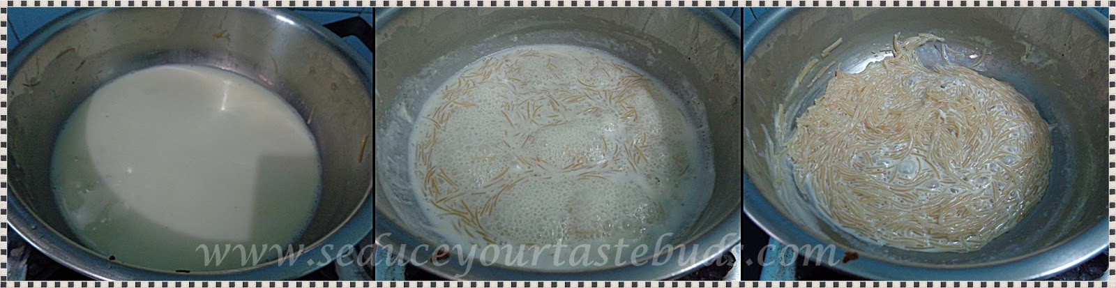 Add a cup of milk to the pan and bring to boil. The milk will reduce and the vermicelli will get cooked.