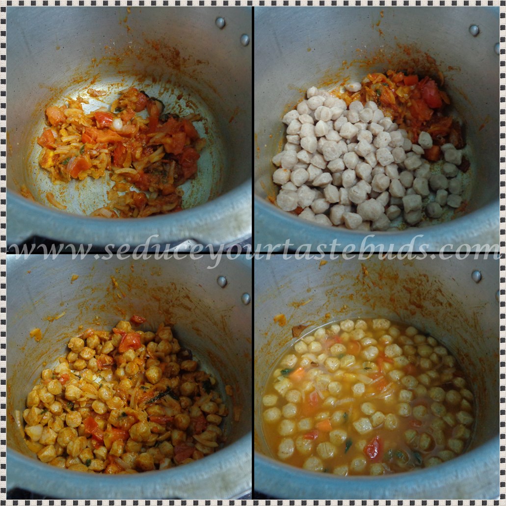 When the kiddo had such a confidence in me, it is only fair to try to make something that meets her expectations. So I got a pack of small meal maker / soya chunks and prepared it for her lunch box. Amidst the rush of getting the kids ready for school,I even clicked pics so that I could use it for the blog if the dish turned out good enough.