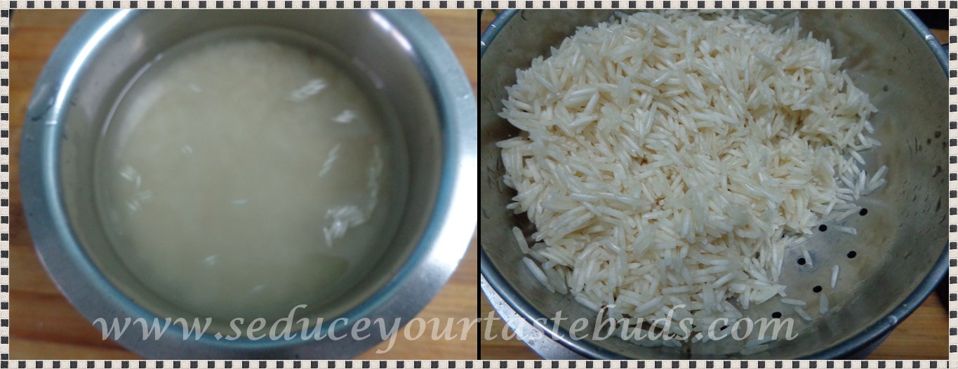 Wash and soak rice for 15 minutes. Drain and keep aside.
